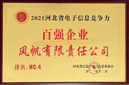 此次评选是河北省信息产业与信息化协会依据2020年度企业年报主营业务收入、企业发展规模、经济效益、科技创新、市场开拓、社会责任贡献等方面综合实力认定。