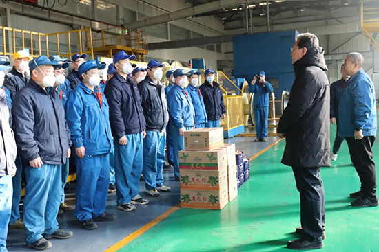 新年伊始,万象更新。2022年1月1日,公司党委书记、董事长李勇、副总经理李小群到高新电源分公司、塑胶科技分公司看望慰问岗位员工,了解元旦期间生产运行、值班值守及员工工作生活等情况,向节日期间仍然坚守奋战在工作岗位的干部员工送去了新年的祝福和慰问,向他们一年来的辛勤工作表示感谢!