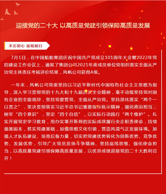 A级!风帆公司以高质量党建引领保障高质量发展