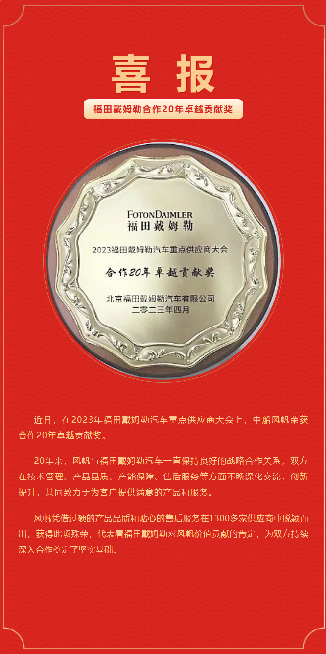 中船风帆荣获福田戴姆勒合作20年卓越贡献奖